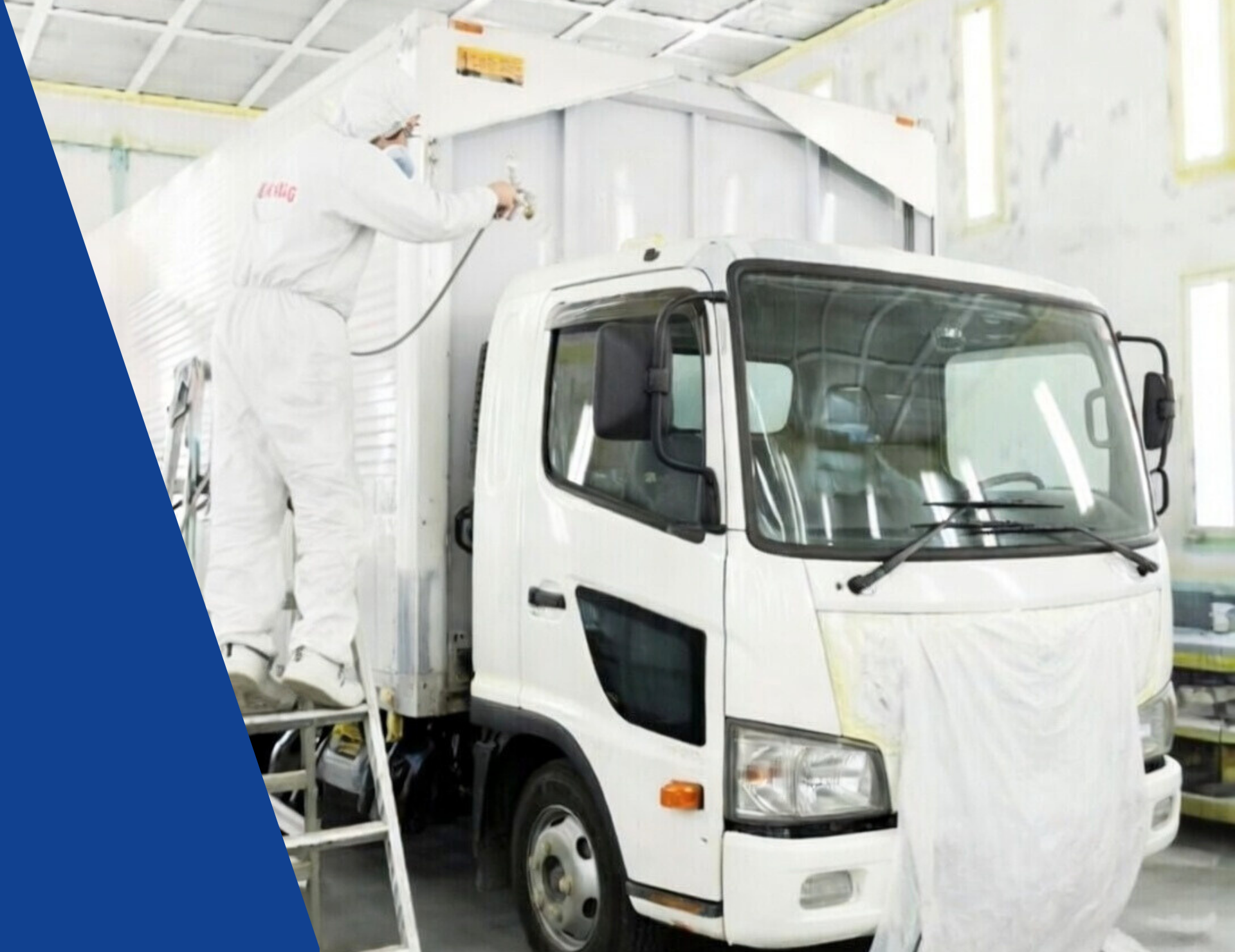 塗装の仕上がりは、トラックの「顔」そのもの。プロの目で見ても恥ずかしくない、美しく耐久性のある仕上がりを、山本工業がお約束します。